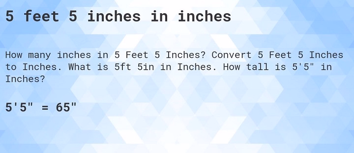 - “5 feet 5 inches” is the most direct and commonly used format in writing. It clearly indicates both units, making it easy to understand.